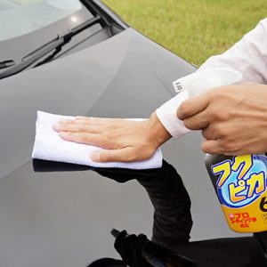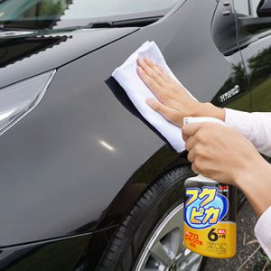 - Bước 2: Phun bề mặt của xe, xịt cách khoảng 30 cm. Lau lại liền bằng khăn mềm mịn và khô (phun đến đâu lau đến đó)