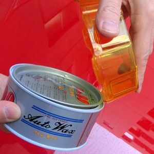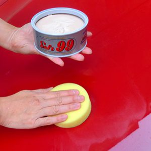 - Bước 2. Dùng miếng bọt biển lấy một lượng sáp vừa phải và trải đều lên bề mặt. Chà mạnh hơn để loại bỏ các vết bẩn nặng hơn như bụi bẩn, nhựa đường…